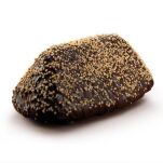 "Giangalup" - trójkątna babka drożdżowa nadziewana kremem Gianduja, polana ciemną czekoladą marki Streglio z posypką z orzechów laskowych